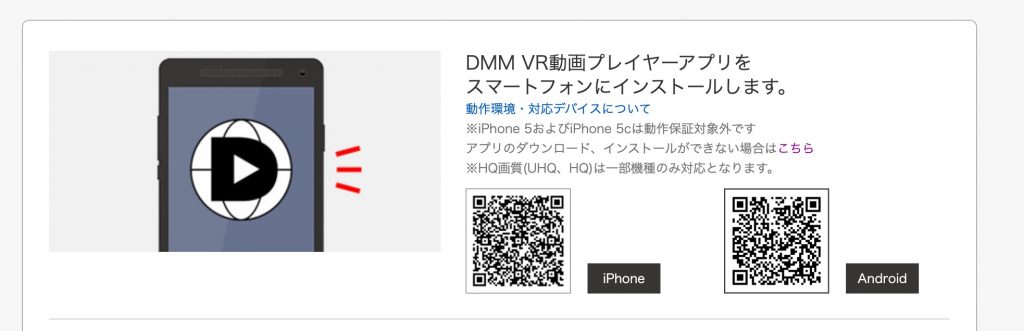 最初にDMM VR動画プレイヤーアプリをスマートフォンにインストールしておきます。