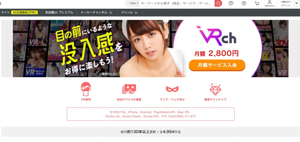 FANZA VRchでは「毎月約130本以上更新 / 全4,954作品」があるので全部みるだけでもどれだけの労力がかかるかわかりますよね。